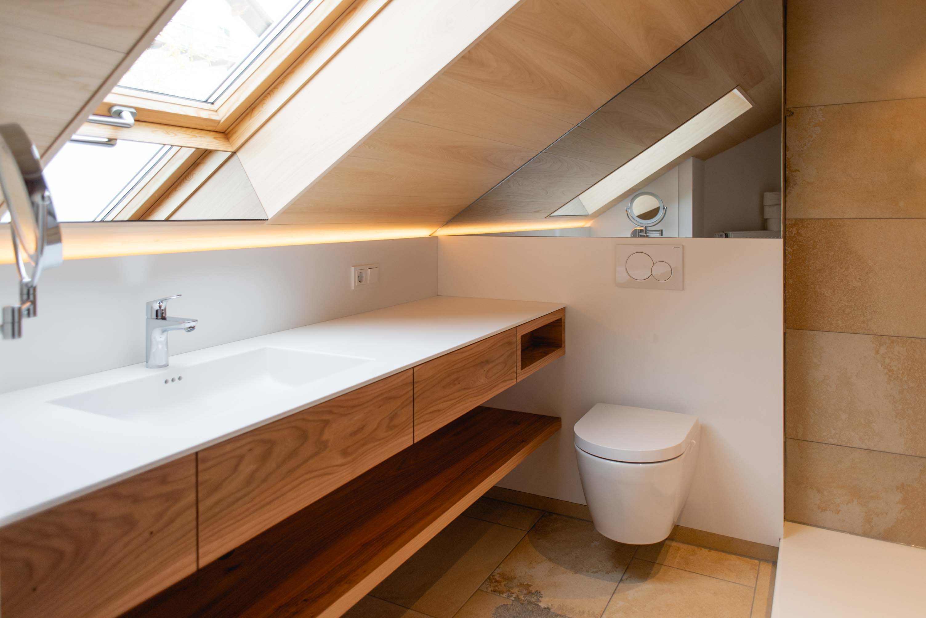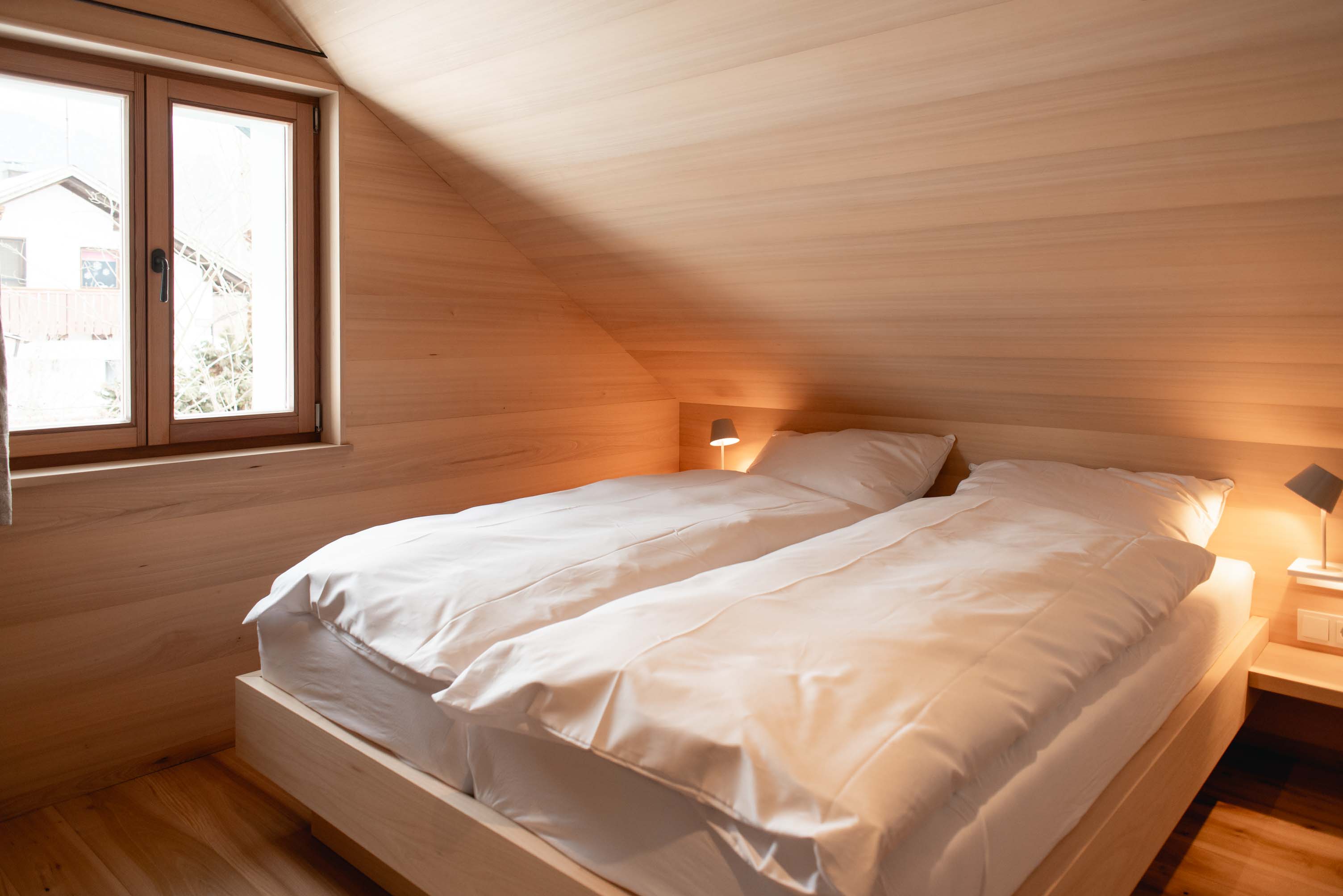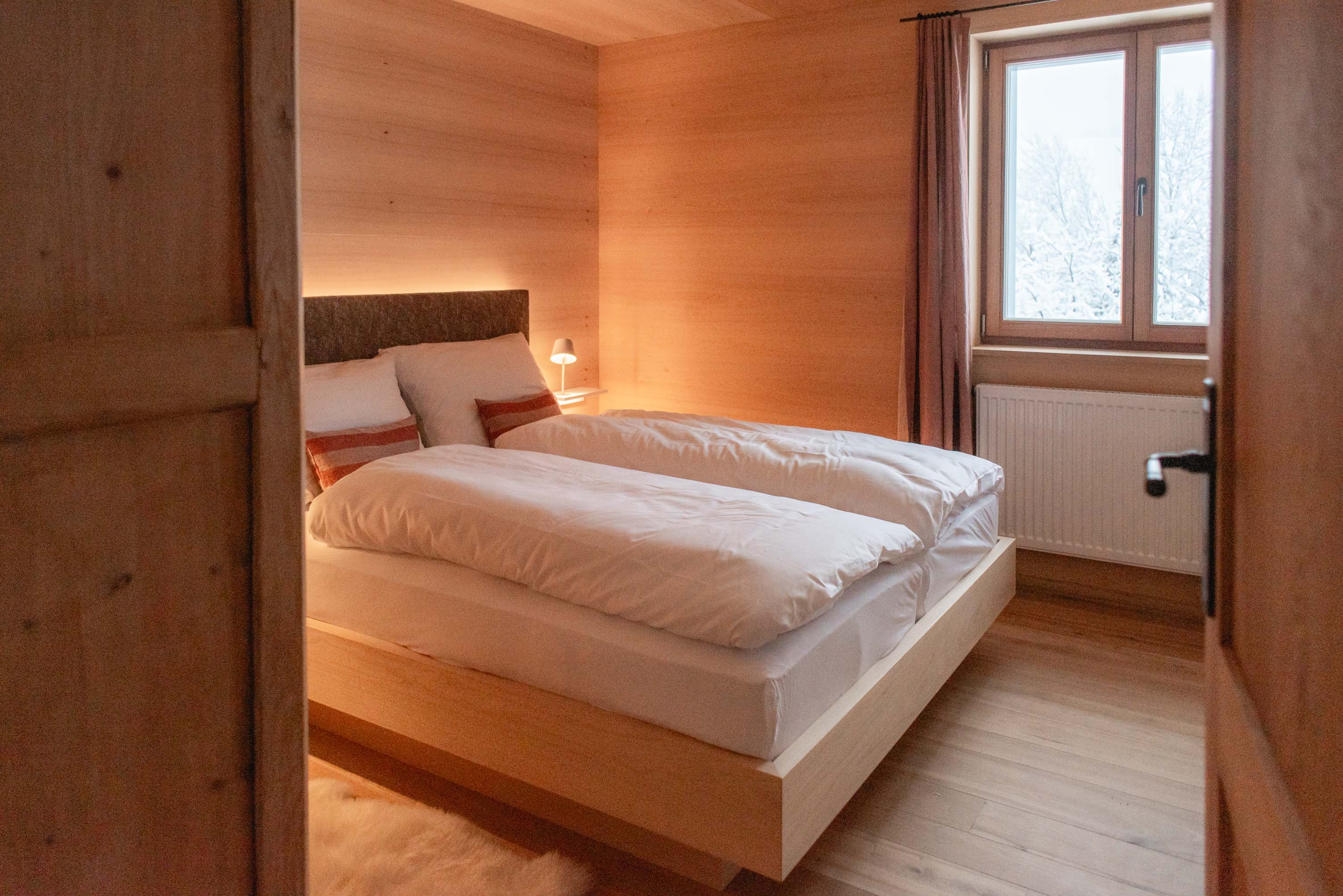 Nach aufwändiger Sanierung ist es jetzt so weit: Das Ferienhaus am Fuße des Ossers kann bezogen werden. Das mit Holzschindeln verkleidete Schmuckstück beherbergt zwei luxuriöse Wohnungen, die kompett neu gestaltet und in handwerklicher Topqualität ausgebaut wurden. Großflächig verbautes Echtholz an Böden, Decken und Wänden und edle Massivholzmöbel geben den Räumen Wärme und vermitteln Naturverbundenheit.